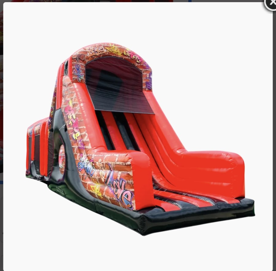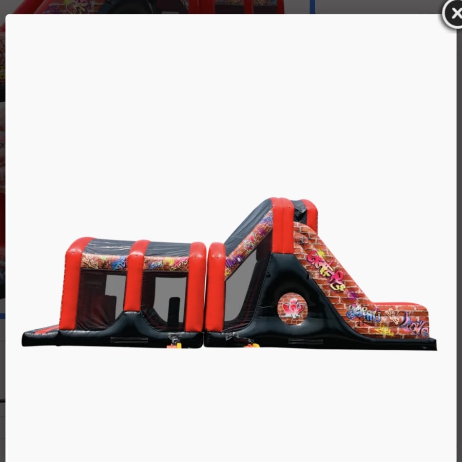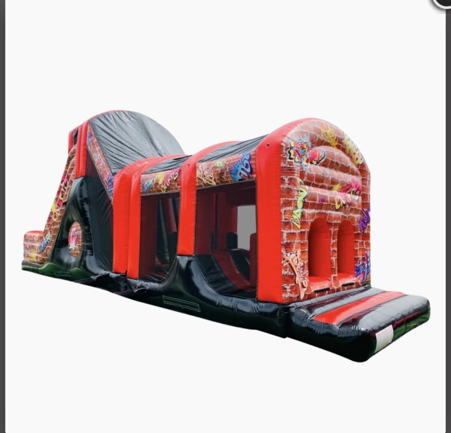 Don’t miss out on this unique, fun-filled inflatable! Contact us today to reserve the 40 ft 2 piece graffiti assault course for your next event and let the games begin! 🏆✨