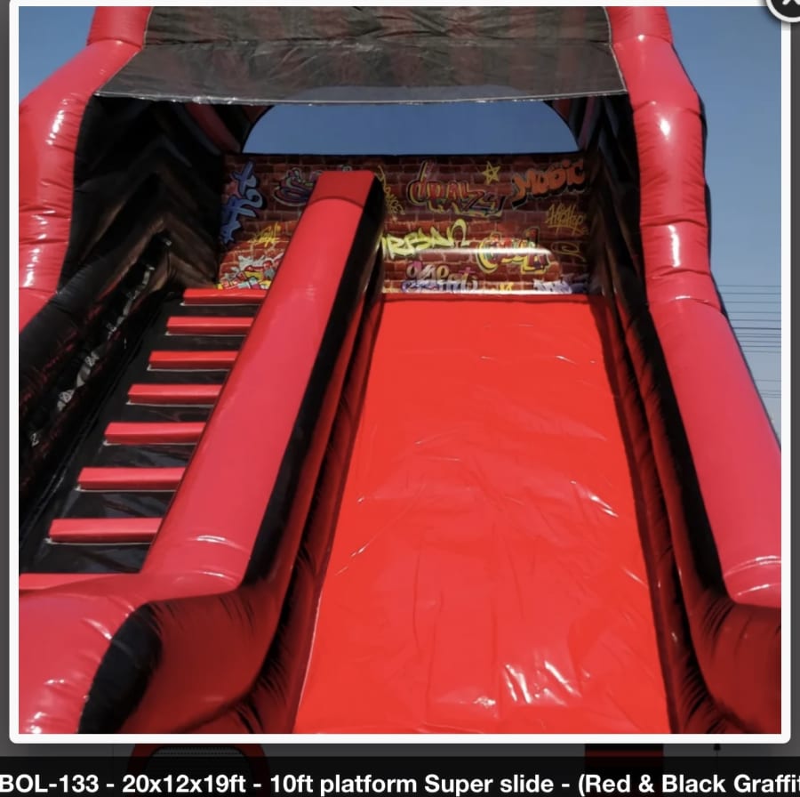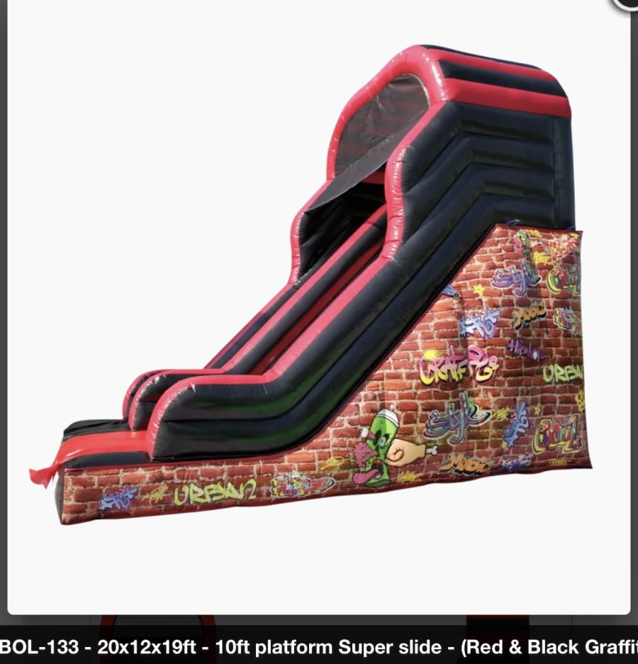 Make your next event stand out with the for hire 20x12x19ft - 10ft Graffiti platform Super slide in Abbots Langley, Aldenham, Amersham, Barnet, Bedmond, Berkhamsted, Borehamwood, Bovingdon, Brent Cross, Bricket Wood, Burnt Oak, Bushey, Camden, Cheshunt, Chesham, Chorley Wood, Colindale, Cricklewood, Cuffley, Dunstable, Edgware, Enfield, Essendon, Finchley, Haringey, Harpenden, Harrow, Hatfield, Hemel Hempstead, Hendon, Hertford, Highgate, Kings Langley, London Colony, Luton, Markyate, Mill Hill, Northwood, Park Street, Potters Bar, Radlett, Rickmansworth, Ridge, Ruislip, Sarratt, Shenley, Slough, South Mimms, St Albans, Stanmore, Stevenage, Ware, Watford, Waltham Abbey, Welwyn, Welwyn Garden City, Wembley, West Hampstead, Wood green. Book now and let the fun begin! 🚀