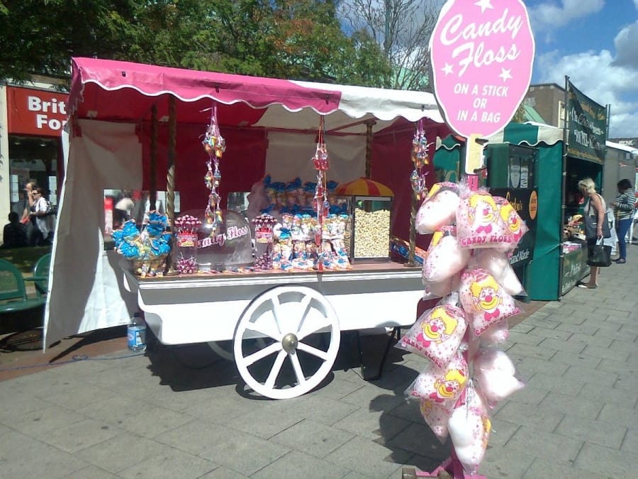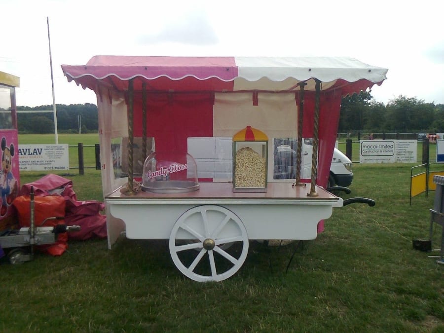 This cart has the options of Candy Floss & Popcorn as well as being able to sell and display all kinds of sweets.