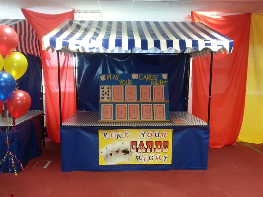 2) With our Bespoke Purpose Built Side Stall Back Board & Cards all set up ready to go. Supply your own Staff and Prizes. When you’re done with it, we’ll come by and dismantle it.