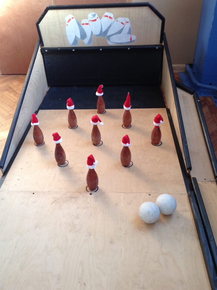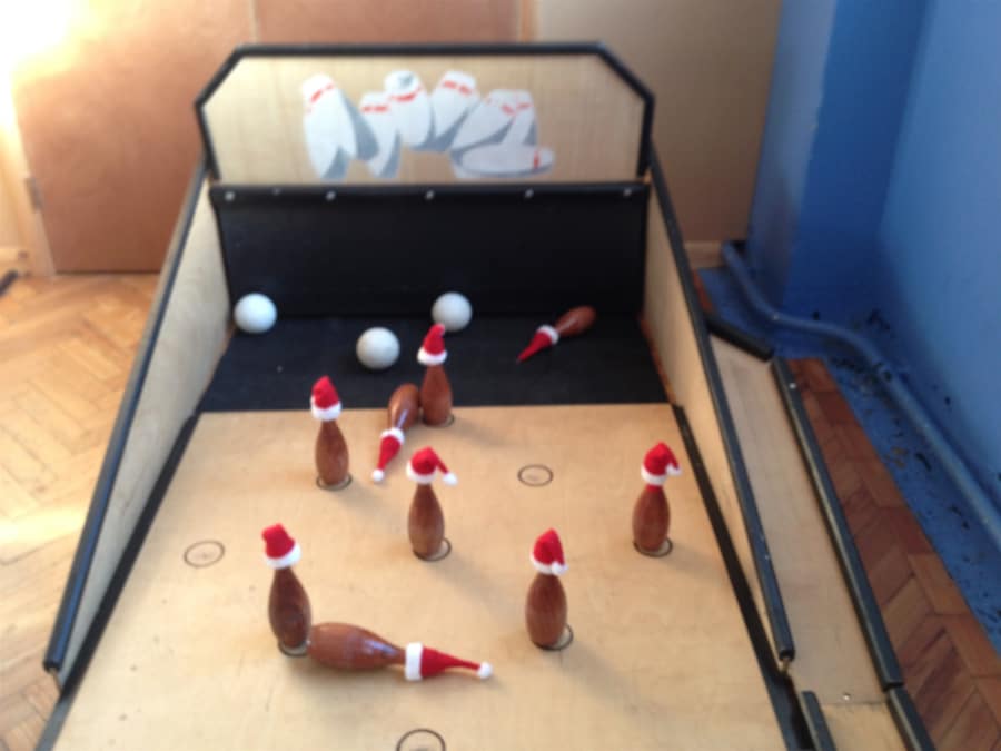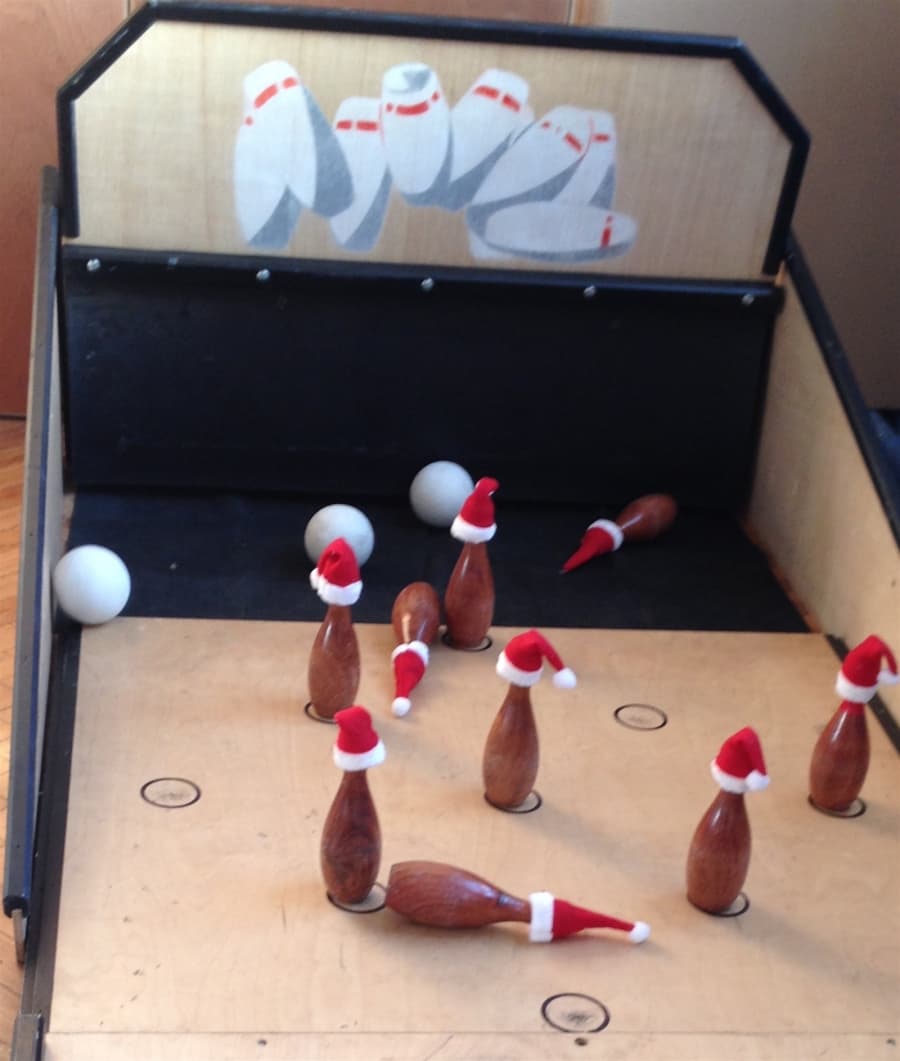 Simple yet effective Santa Skittles is played exactly the same as the traditional game of Skittles or you can make up your own game based on how many skittles knocked down gets a prize perhaps? Each Skittle has its own cute little Santa hat!