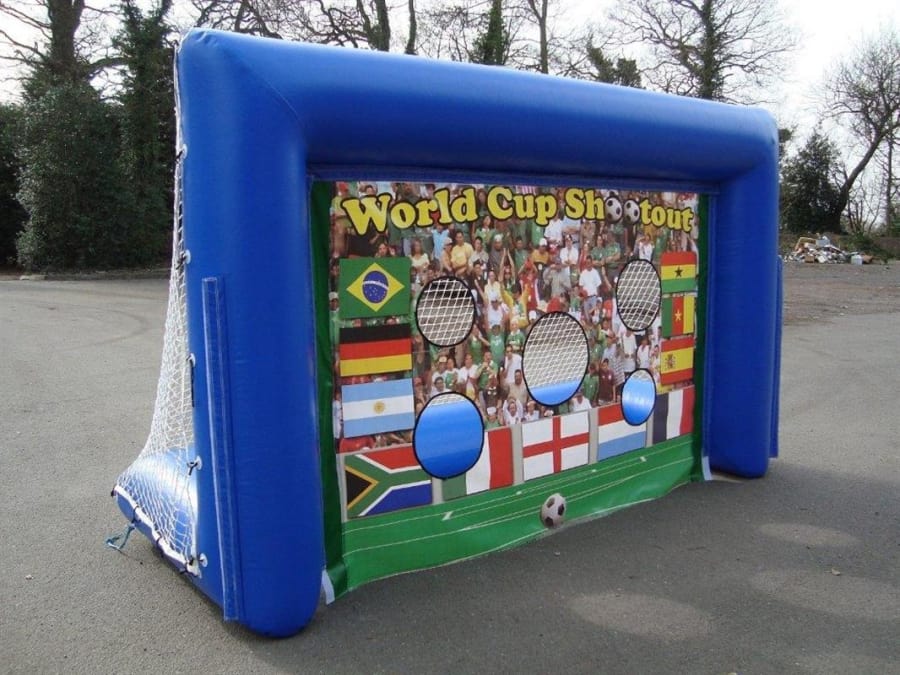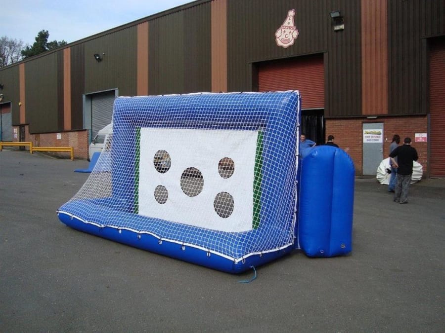 This Stunning Worldcup, Beat the Goalie Inflatable Goal Posts can be used in two ways. The World Cup Panel is removeable when you get bored with testing your accuracy skills with the target practise Goal Holes to reveal a 3.6m x 2.25m Goal Post for a game of the real thing! This is a sealed unit, so once its up, its up! (Doesn't require continous power.)