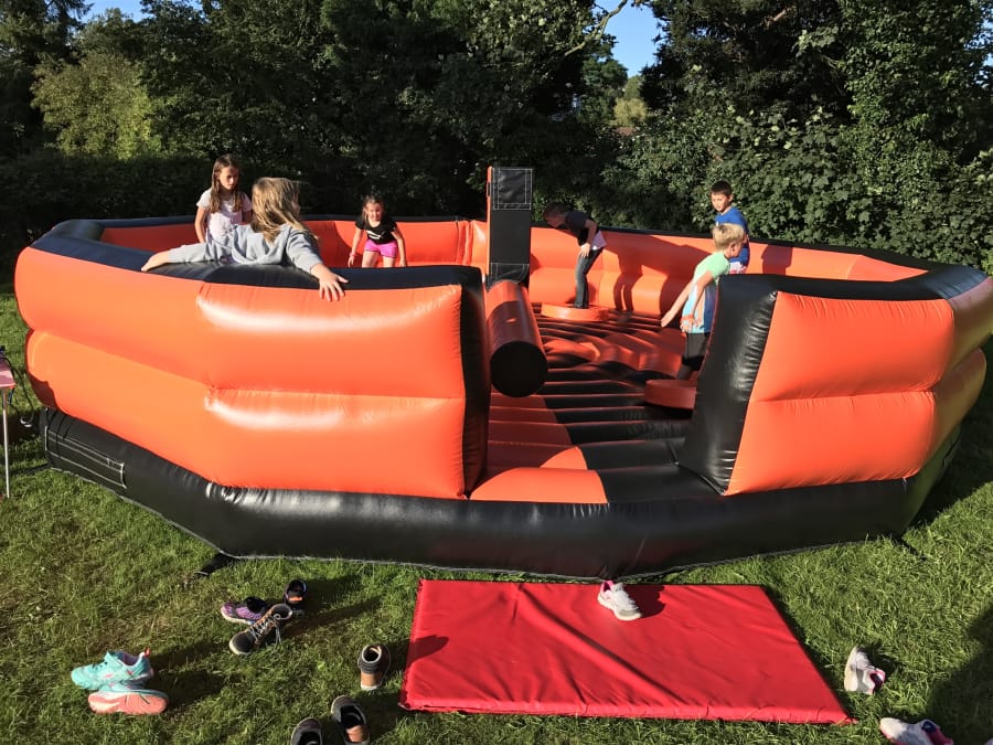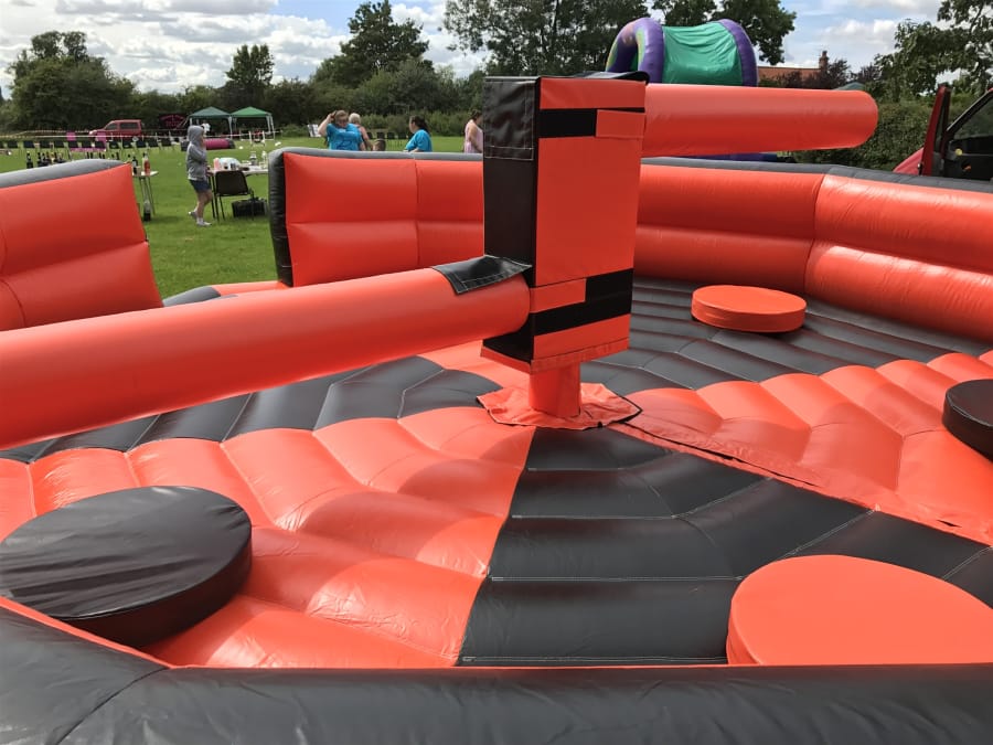 Our Last Man Standing or Mine Sweeper as we refer to it, is a new addition to this years range. With 6 raised Buttons for the players to stand on and an upper and lower arm that rotates in the attempt to make the participant duck or jump as it swings round is an altogether new challenge from our 8 Man Last Man Standing which is a jumping only version. This item is supplied fully staffed by our trained personnel and is easier to site with its smaller dimensions than our 8 man type Sweeper.